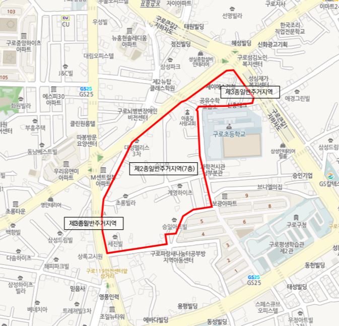 ○ 구로구 구로동 511 일원(57,000㎡)은 전체 노후도가 약 88%에 달하고 단독ㆍ다가구 주택 비율이 84%에 달하는 전형적인 노후 저층주거지로 상습적인 주차난으로 어려움을 겪는 지역이다.