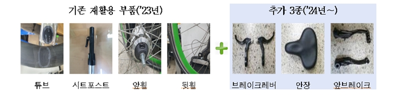 ○ 2023년부터는 폐기 대상 따릉이에서 안전성이 확인된 부품을 재활용해 신속하게 부품을 수급하고 있다. 재활용 부품은 튜브, 시트포스트 등 4종(1억3천만원 절감)에서 지난해에는 안장과 앞브레이크 등 7종을 확대해 약 2억 4천만원을 절감했다.