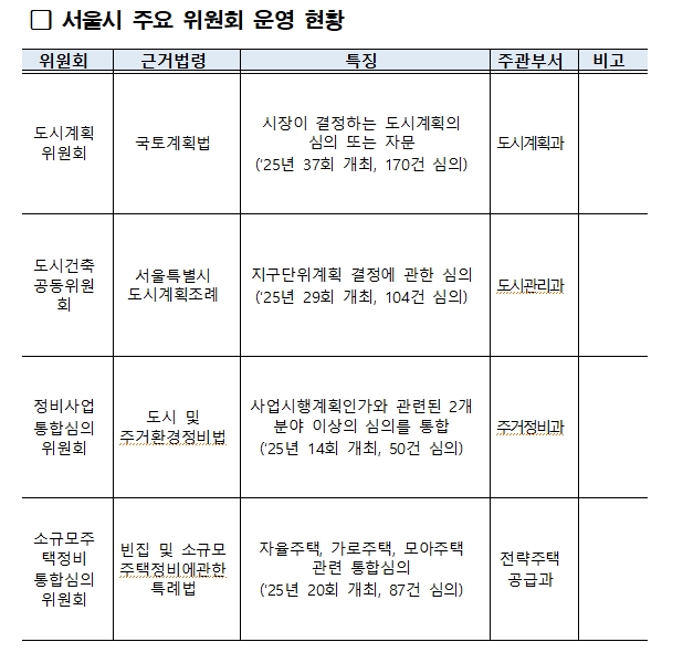 □ 오 시장은 “도시계획과 정비사업 심의는 단순한 행정 절차가 아니라, 서울의 미래 청사진을 그리는 최종 의사결정 과정”이라며, “시민들이 가장 큰 관심을 갖는 주택공급과 도시환경의 질이 바로 이 자리에서 결정된다”고 말했다.