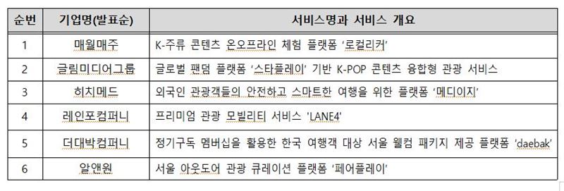 ○ 성과보고회 이후에도 서울시와 서울관광재단은 창업기획자(액셀러레이터)를 통해 투자유치 연결, 기업 간 협업 추진, 글로벌 진출 지원 등 후속지원을 지속할 예정이다.