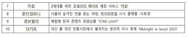 □ 서울시와 서울관광재단은 지난 11월 15일(수) 서울관광플라자에서 ‘2023 서울 관광새싹기업(스타트업) 최종 성과보고회(데모데이)’를 개최하였다고 밝혔다.