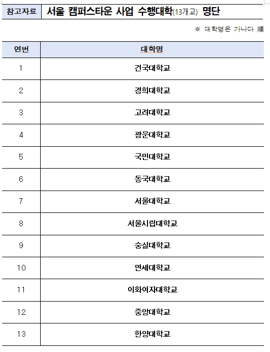 □ 서울시는 대학·자치구와 함께 청년 창업가에게 공간과 멘토링 등을 제공하는 ‘캠퍼스타운 사업’을 ’26년부터 수행할 13개 대학을 선정했다고 18일(목) 밝혔다.