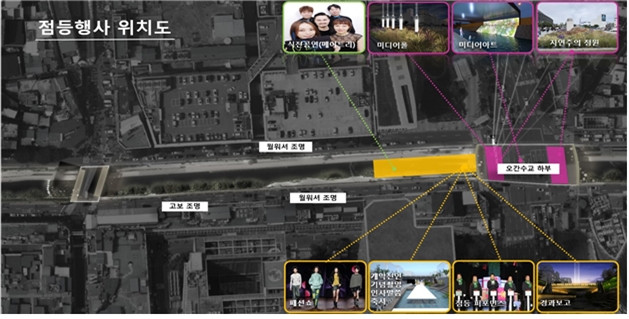 ○ 오간수교에서 버들다리, 나래교까지 이어지는 산책로는 은은한 조명으로 수면과 함께 빛을 반사하며, 시민은 걸음에 따라 빛, 물, 영상이 연결되는 흐름을 따라가며 ‘밤을 걷는 청계천’의 변화를 감상할 수 있다.